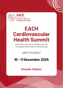 EACH Cardiovascular Health Summit https://world-heart-federation.org/news/each-cardiovascular-health-summit/ Tue, 11 Nov 2025 14:35:34 +0000 https://world-heart-federation.org/?post_type=news&p=34884 Save the Date: EACH Cardiovascular Health Summit When: 10–11 December 2025 | Add to calendarWhere: Brussels, Belgium Why: With the EU Cardiovascular Health Plan expected to be published by the European Commission before the end of this year, the EACH Cardiovascular Health Summit will serve as a key opportunity to maintain political momentum and advocate […]